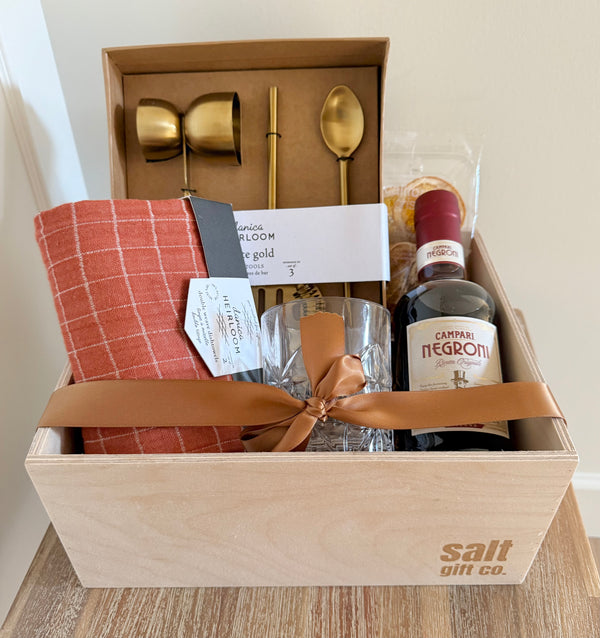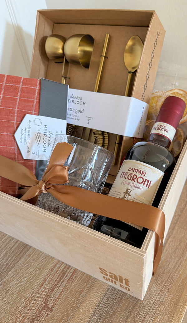 Celebrate the timeless Italian classic with our Negroni Box. Featuring everything you need to stir up the perfect balance of bitter, sweet, and bold, this box brings aperitivo hour home. A sophisticated gift for cocktail lovers and a stylish nod to la dolce vita.