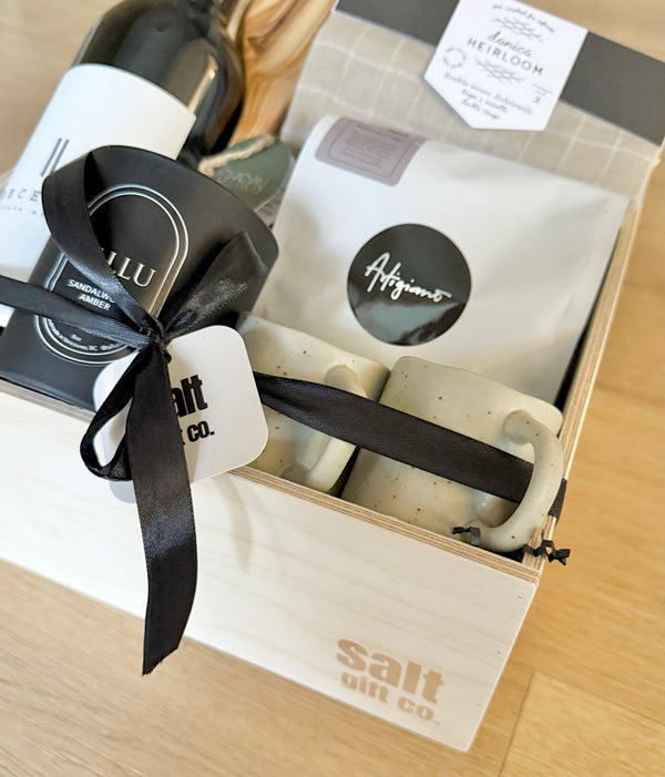 A warm and refined collection designed for slow moments at home. Featuring a bold red wine, artisan coffee beans, sleek espresso cups, and a sandalwood & amber candle—this box brings together the simple pleasures of sipping, savoring, and unwinding. Thoughtfully curated to elevate everyday rituals and create a cozy, inviting atmosphere.