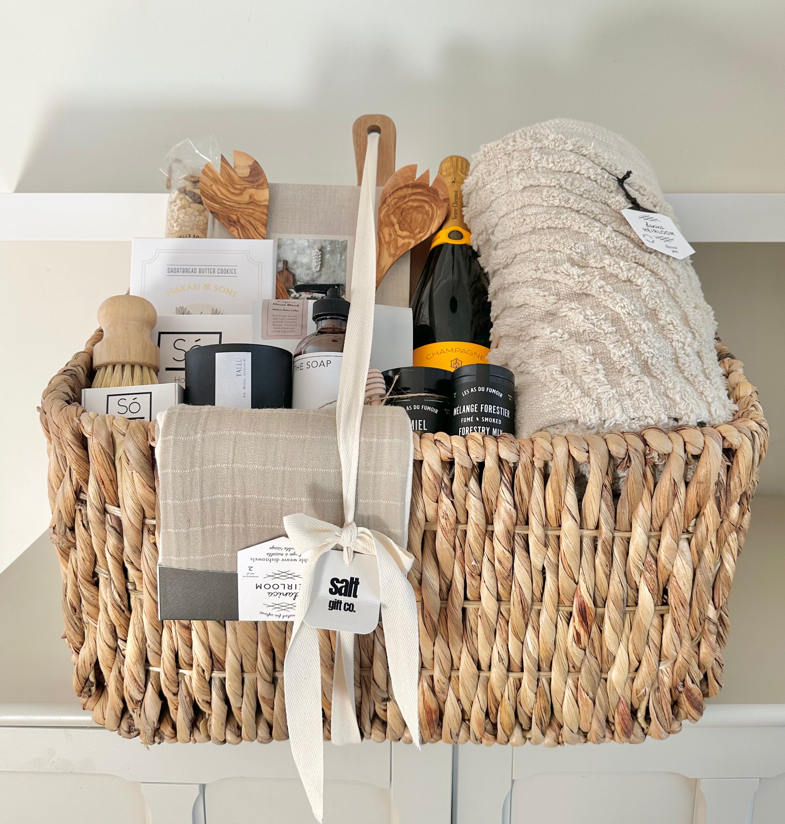 Welcome your clients, friends or loved ones to their new home with the Lux housewarming gift basket, thoughtfully curated to blend practicality and warmth. This stylish basket features a selection of artisanal snacks, gourmet treats, and comforting essentials to make their transition seamless and enjoyable.