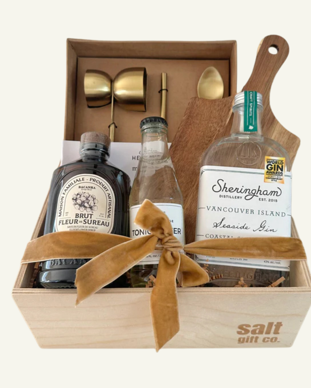 We can all use a good excuse to celebrate! This modern decadent gift box offers all the items needed to craft the perfect Gin cocktail.