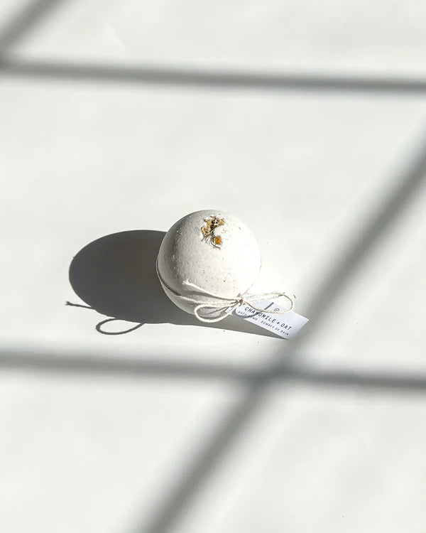 Indulge in a soothing ritual with the Chamomile + Oat Bath Bomb, a natural bath bomb designed to calm the senses and soften the skin. Handcrafted in small batches with colloidal oat and chamomile extract, it fills warm water with gentle hydration and a subtle, floral-herbal aroma. Hints of citrus, lavender, and cedarwood add quiet depth, creating a relaxing soak that restores balance and ease.