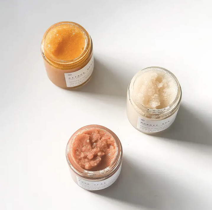 Our Skin Smoothing Scrub contains organic sugar, skin-nourishing oils and pure castile soap. Fine sugar will gently exfoliate roughness while natural vegan oils moisturize the skin. As you massage it with water, it will turn into a foaming cleanser leaving you with clean, smooth and glowy skin. Handcrafted in small batches Scented with essential oils No artificial fragrances or colourants NORDIC SPA (lavender, clary sage, rosemary and eucalyptus essential oils, lavender buds) INGREDIENTS organic sugar, avocado oil, olive oil, castile soap, essential oil blend, natural additives (orange peel granules, clays)