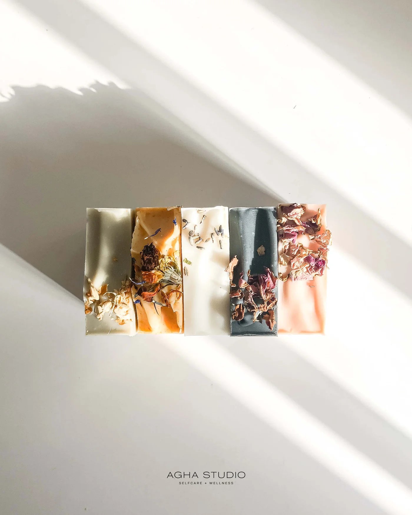 Our Cashmere Body + Face Bar is a luxurious cleanser that softens the skin with creamy, mineral-rich lathers. Its aroma is warm and composed — vetiver’s smoky depth blended with cedarwood, spiced nutmeg, and the floral richness of ylang ylang. A ritual of comfort and quiet luxury for daily care.