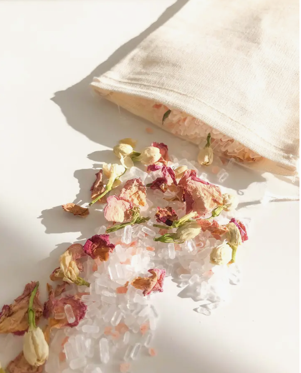 This luxury flower goddess bath salts is infused with invigorating essential oils and nourishing minerals to revitalize your body and mind. Elevate your bath time to an enchanted flower spa. Infused with therapeutic grade essential oils. All-natural, handcrafted, vegan and cruelty-free. 8oz bag.