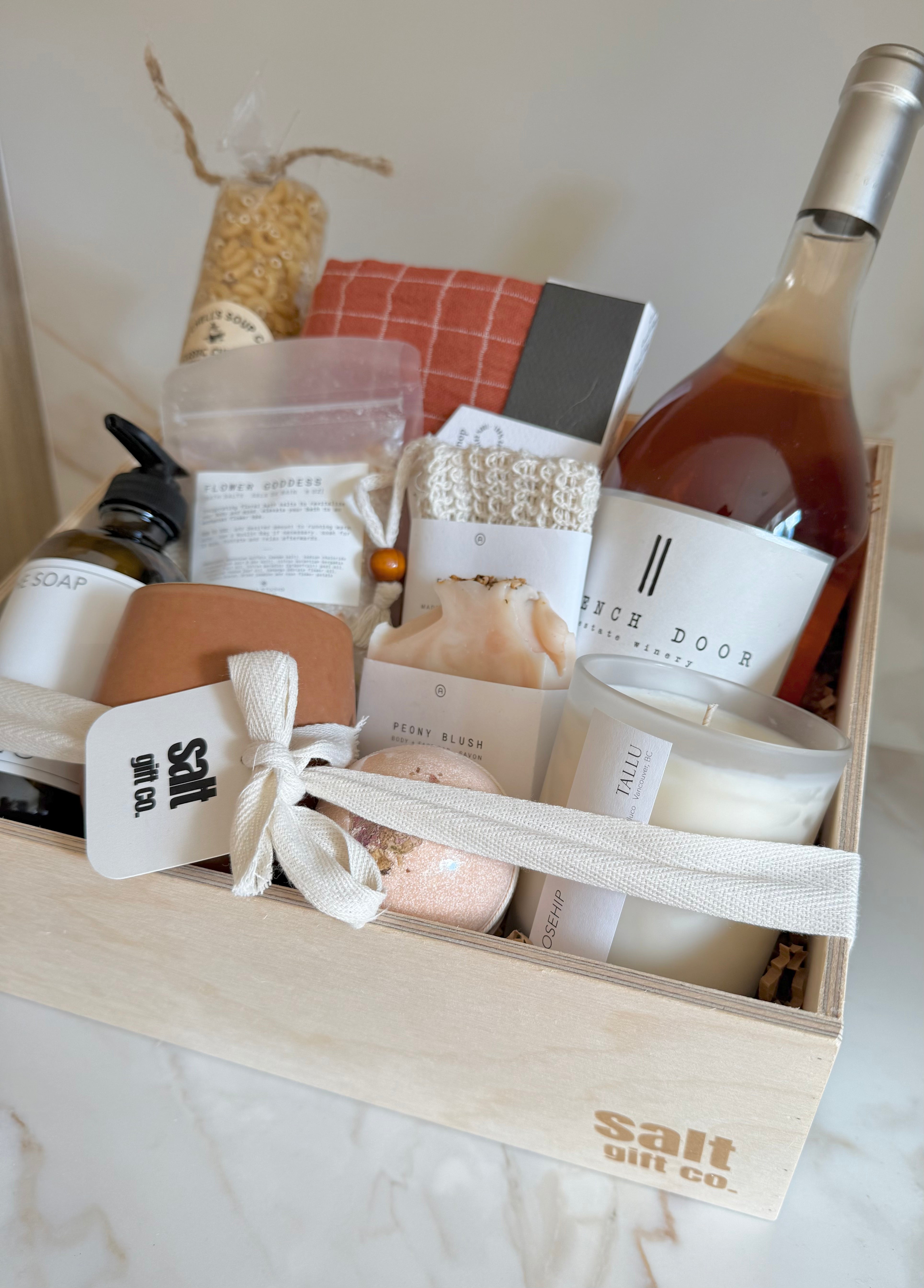 Packaged in a keepsake pine box tied with a ribbon and option to add a note. We will handwrite your sentiment and include it with your gift.
